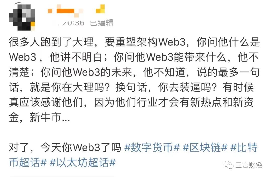 有网友就直言大理的Web 3大会在行外人看来就像是“骗子集会”;