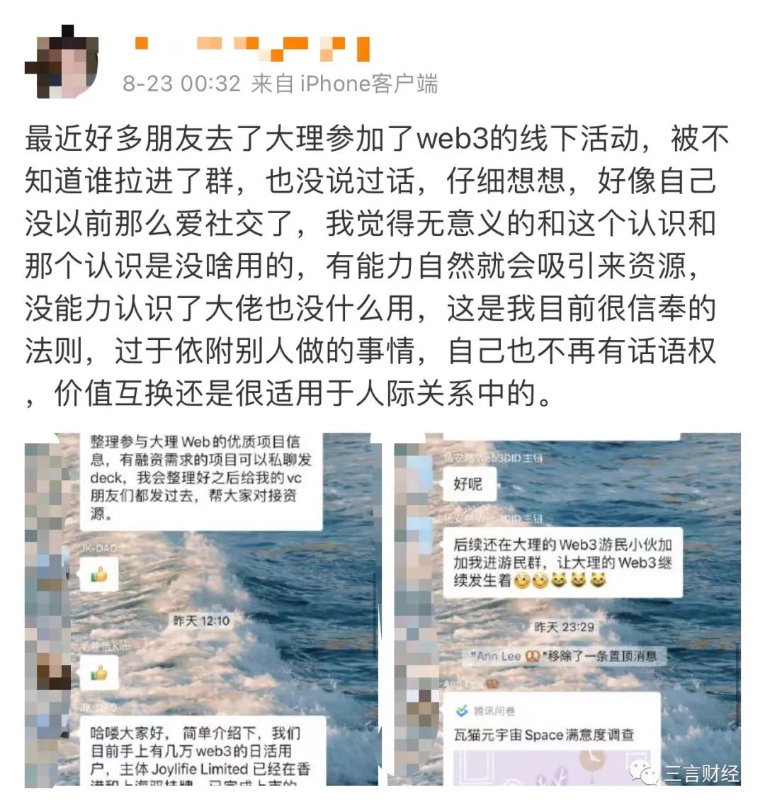 带着这个问题,三言财经同一位参加了大理Web 3活动的品牌顾问师先生聊了聊。
