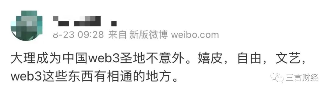 有网友表示,大理“嬉皮、自由、文艺”,这都是与Web 3有相通的地方,所以成为Web 3 圣地并不意外。