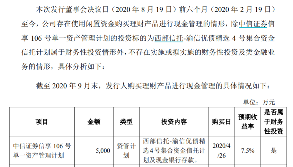 东方铁塔此前公告显示,东方铁塔在2020年4月出资5000万元购入了中信证券信享106号单一资产管理计划。****该资管计划最终投向的是西部信托-渝信优债精选4号集合资金信托,后者债务人为北大资源下属蓝德置业,涉及项目正是杭州海港城项目。