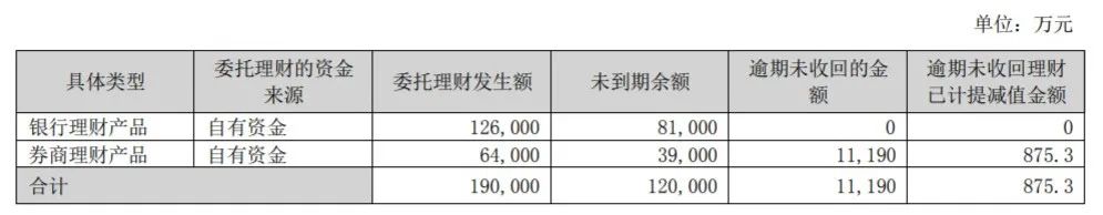 截至2022年6月末,富安娜共购买了19亿元理财产品,其中银行理财12.6亿元,到期部分已经顺利收回;券商理财产品6.4亿元,有1.119亿元逾期未收回,还有3.9亿元目前尚未到期。