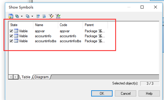 (PD)PowerDesigner如何将一个包里的表拷贝到另一个表以后在视图中也可以显示?