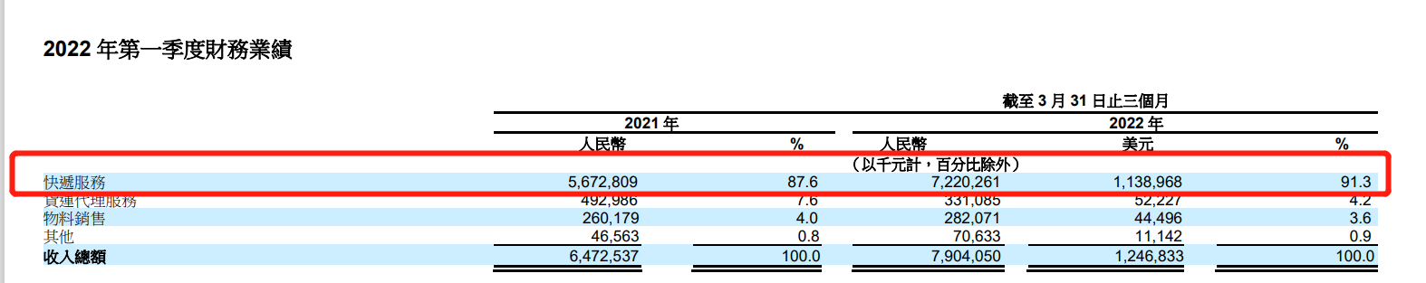 2022年5月26日,中通快递公布第一季度未经审计的财务业绩,包裹量依然亮眼,营收、毛利、净利润同比增长较快,但环比下降。2022年第一季度营收79亿元,同比增长22.1%;净利润8.7亿元,同比增长64.1%。2022年第一季度月中通快递包裹量增长16.8% 达52亿件,市场份额扩大至21.6%,同比增加1.2%。