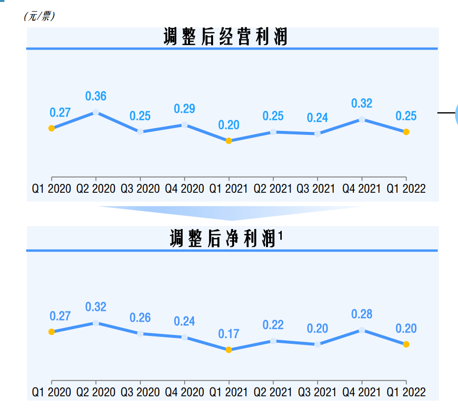 单票调整后的经营利润同比增加0.05元,调整后中通快递每单净利润可达0.2元,同比多增加0.03元。也就是说,同期相比,这一季度,中通快递单票多赚3分钱。