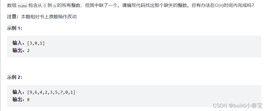 2.完整的数组nums应该是从0-n,有n+1个数