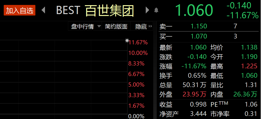 在收退市警告函5个月后,百世集团才宣布已重新符合纽交所上市标准,危机暂时解除。但财报发布后,百世集团6月9日收盘跌幅达11.67%,股价达到1.06美元/股,再次距离“仙股”一步之遥。