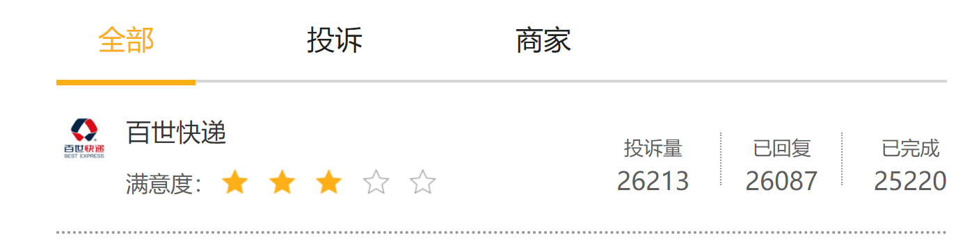 作为曾经在黑猫上被累计投诉过万条的物流服务企业,百世集团的情况并不乐观。大部分投诉中,“原地打滚”、损坏、长时间无物流信息等现象已经成为常态。 百世快递丢件、乱收费等现象也一直被人诟病。