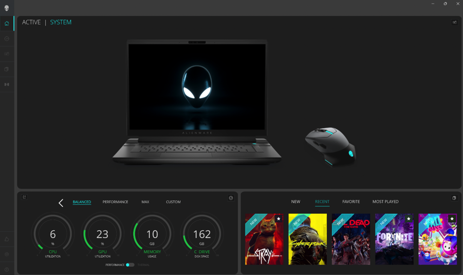 重新设计的AWCC外星人智动能技术平台不仅仅是软件更新和对先前版本的增强。它采用了一个全新架构,具有非常直观的、动态的UI面板设计,这不仅使AWCC外星人智动能技术平台更容易浏览和更新,而且使玩家体验更好的游戏过程。