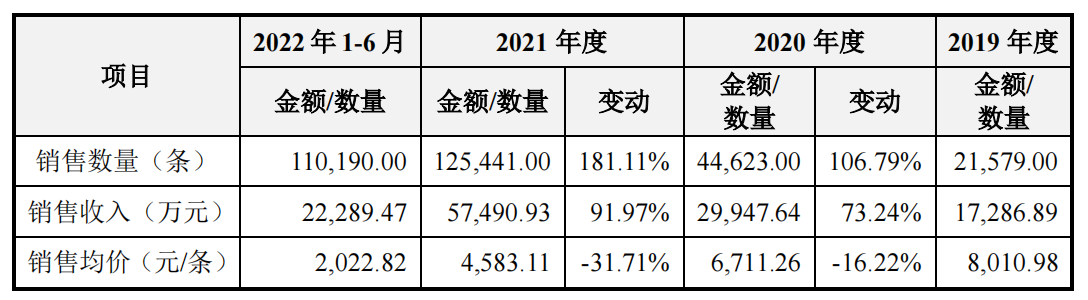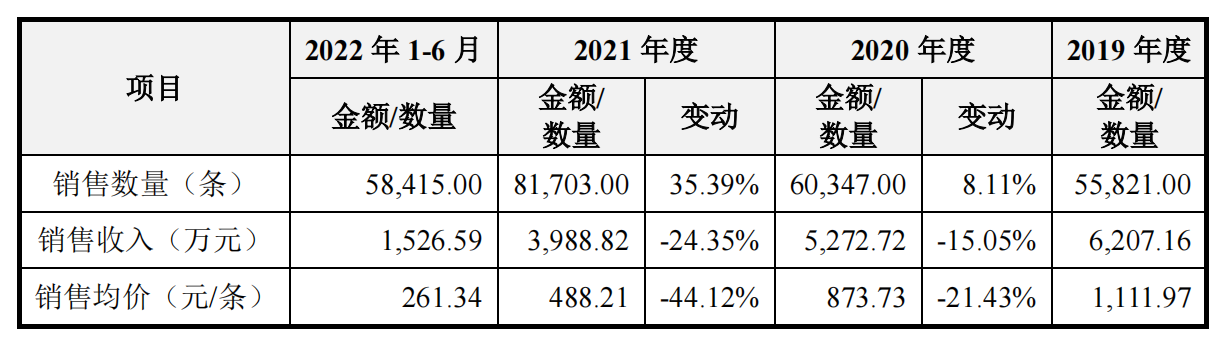 在集采影响下,公司另一主要产品球囊扩张导管产品的毛利率下滑更加明显,报告期内分别为80.82%、76.12%、62.53%和33.42%。公司表示,2020年、2021年全国范围陆续有31个省市区对球囊扩张导管实施集中带量采购,公司产品已在18个省市区中选。而该产品的价格也已从2019年的1111.97元/条跌至仅261.34元/条,降幅达76.51%。