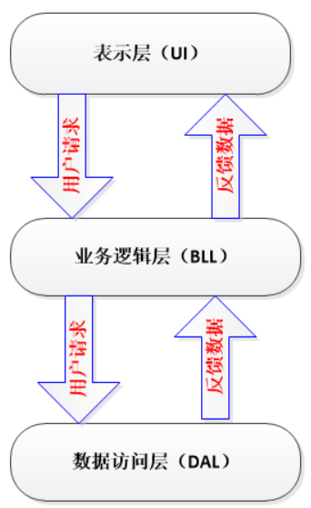 DAL:(数据访问层): 与数据库打交道。主要实现对数据的增、删、改、查。将存储在数据库中的数据提交给业务层,同时将业务层处理的数据保存到数据库。(当然这些操作都是基于UI层的。用户的需求反映给界面(UI),UI反映给BLL,BLL反映给DAL,DAL进行数据的操作,操作后再一一返回,直到将用户所需数据反馈给用户)