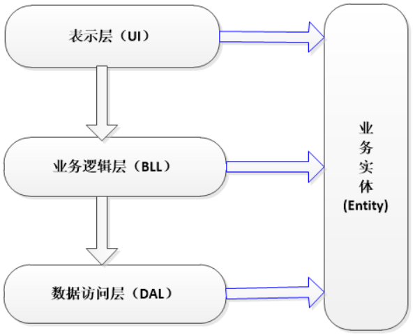 ** Entity(实体层):**它不属于三层中的任何一层,但是它是必不可少的一层。