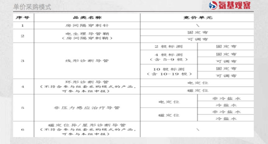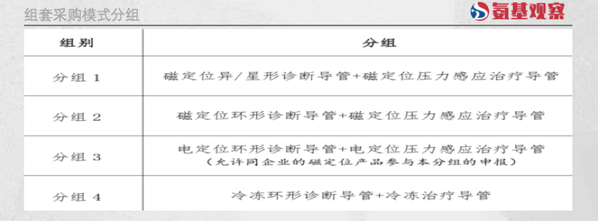 其中,组套采购模式中,射频消融治疗用非线形诊断导管与压力消融治疗导管,以及冷冻消融治疗用冷冻环形诊断导管与冷冻治疗导管,按照 1:1 的配比进行采购。