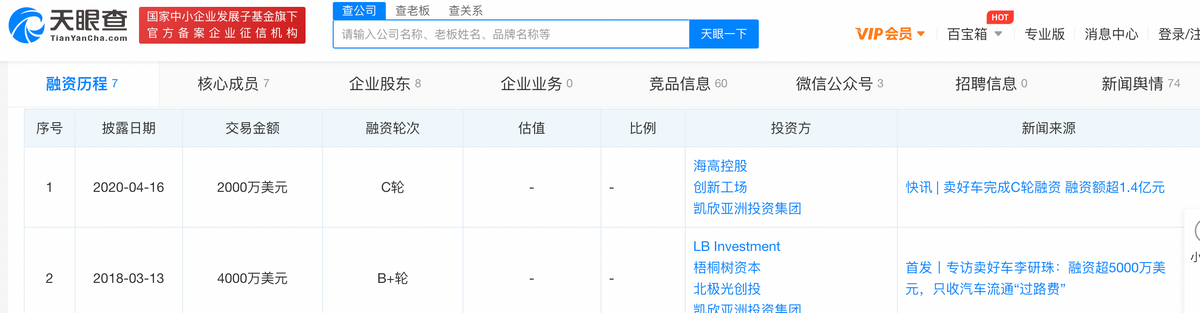 从资本市场的反馈来看,一级市场中对“含技术量”比较高的B2B数字化平台态度依旧不明显。天眼查APP融资信息显示,卖好车此前已经经过数轮融资,2020年4月份C轮融资超过1.4亿元,公开信息渠道并未获取到其他最新融资消息。