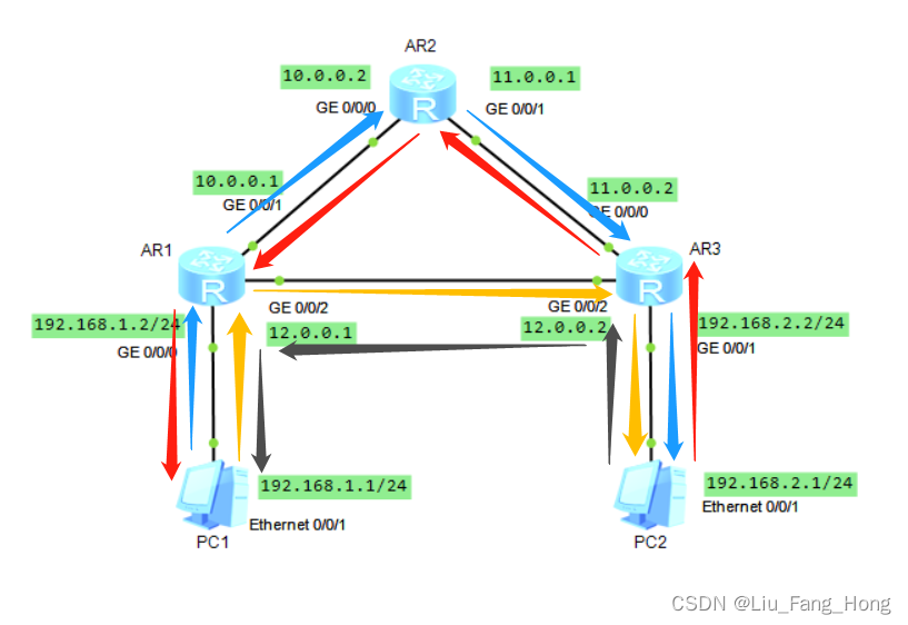[R1]ip route-static 192.168.2.2 24 12.0.0.2