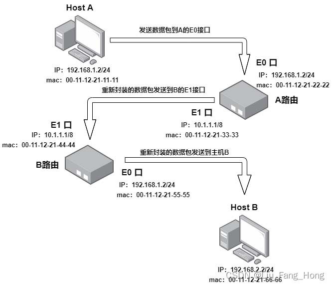 路由:是从源主机到目标主机的转发过程(转发数据,寻找地址和选择转发的最佳路径)