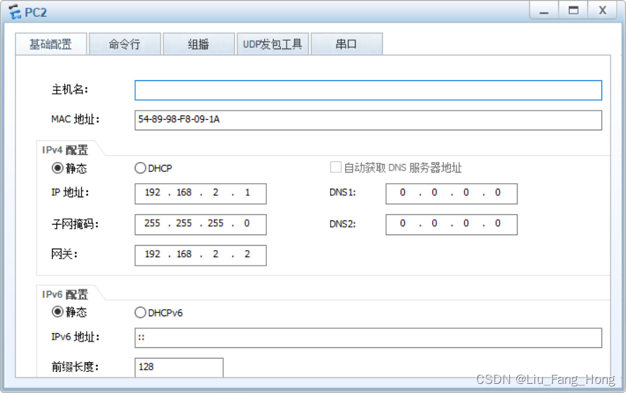 我们打开PC 1和PC 2设置其IP地址,网关和子网掩码,并且给每个接口分配IP地址