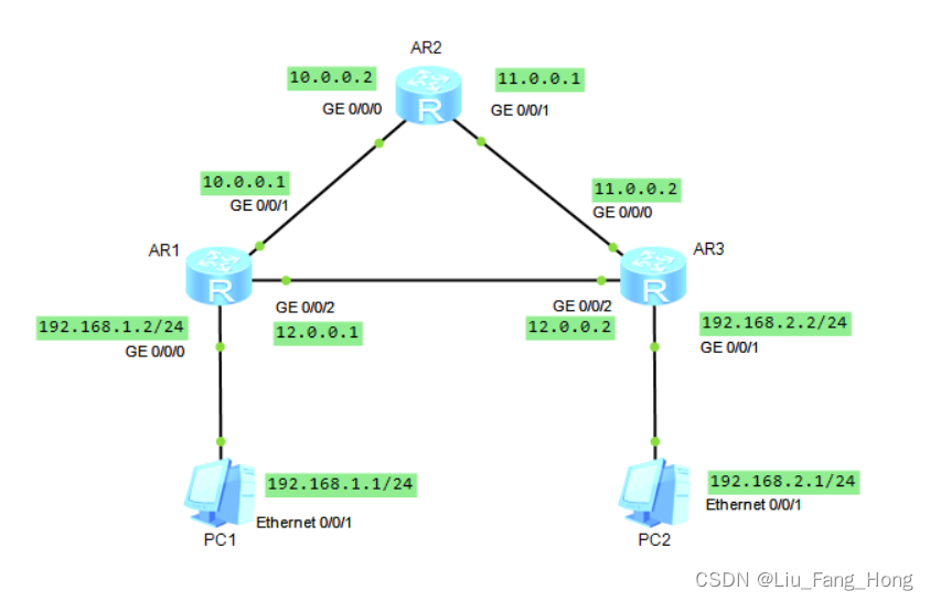 [R3]ip route-static 192.168.1.2 24 12.0.0.1