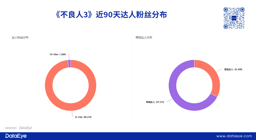 总的来说,《不良人3》项目组对于效果型达人营销力度投入中度偏低,试水可能性较大。主要希望用相对较低的营销成本观察整体效果,为后续营销做铺垫。
