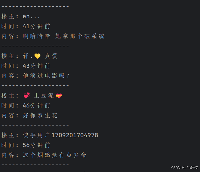driver.get方法打开目标网页,这里使用的是https://www.kuaishou.com/new-reco。- 使用WebDriverWait等待页面加载完成,直到页面中的评论项(通过CSS选择器.comment-item定位)出现。- 使用time.sleep(10)等待10秒,以确保页面完全加载。 - 获取评论项:- 使用