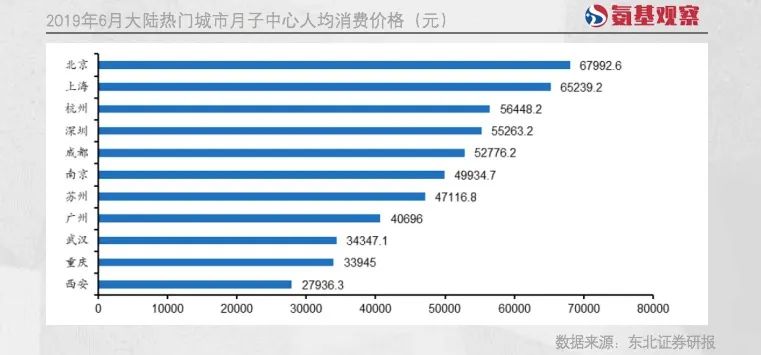 价格方面,内地的月子中心定价同样不便宜。根据艾媒咨询,2019年6月北京和上海两大超级都市人均价格超过6万元;包括西安、重庆等地也均在3万元左右。