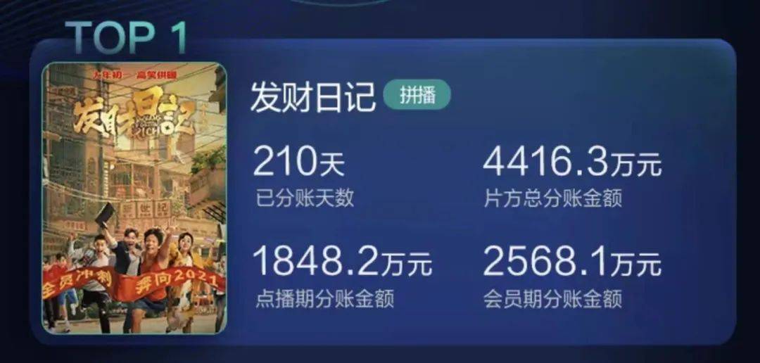 按照目前公开的单一票房数据来看,云影院票房表现最好的《发财日记》爱奇艺平台分账金额基本可以对标票房1.3亿+的院线电影。