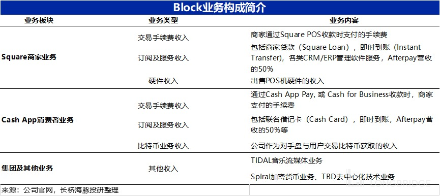 Block 虽并非规模,但业务构成却相当复杂,因此不熟悉的读者可通过下表简要了解公司的业务构成,以便更好的理解 Block 的财报以及我们下文的分析。