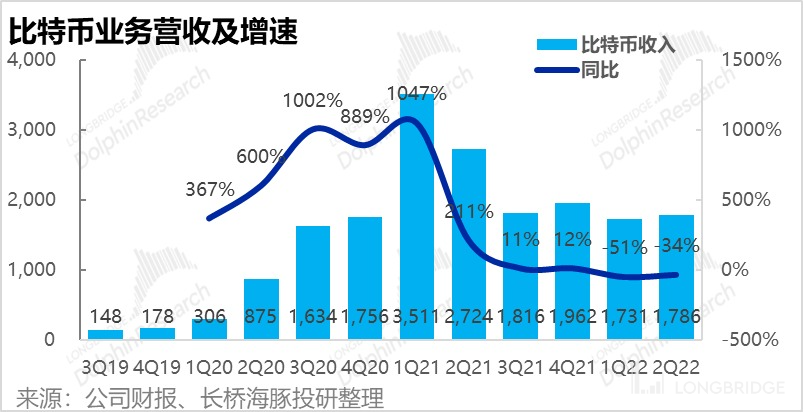 本季比特币业务收入 17.86 亿美元,相比上季度环比略有增长,好于市场预期的 16.96 亿。海豚君认为这主要是因为比特币价格在暴跌后企稳并有所反弹,加密货币的交易热度比悲观的预期更好。