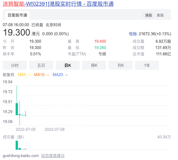 2022年7月5日,涂鸦智能以双重主要上市的方式登陆港交所,发行价为19.3港元/股。7月11日收盘,涂鸦智能的股价依然为19.3港元/股。