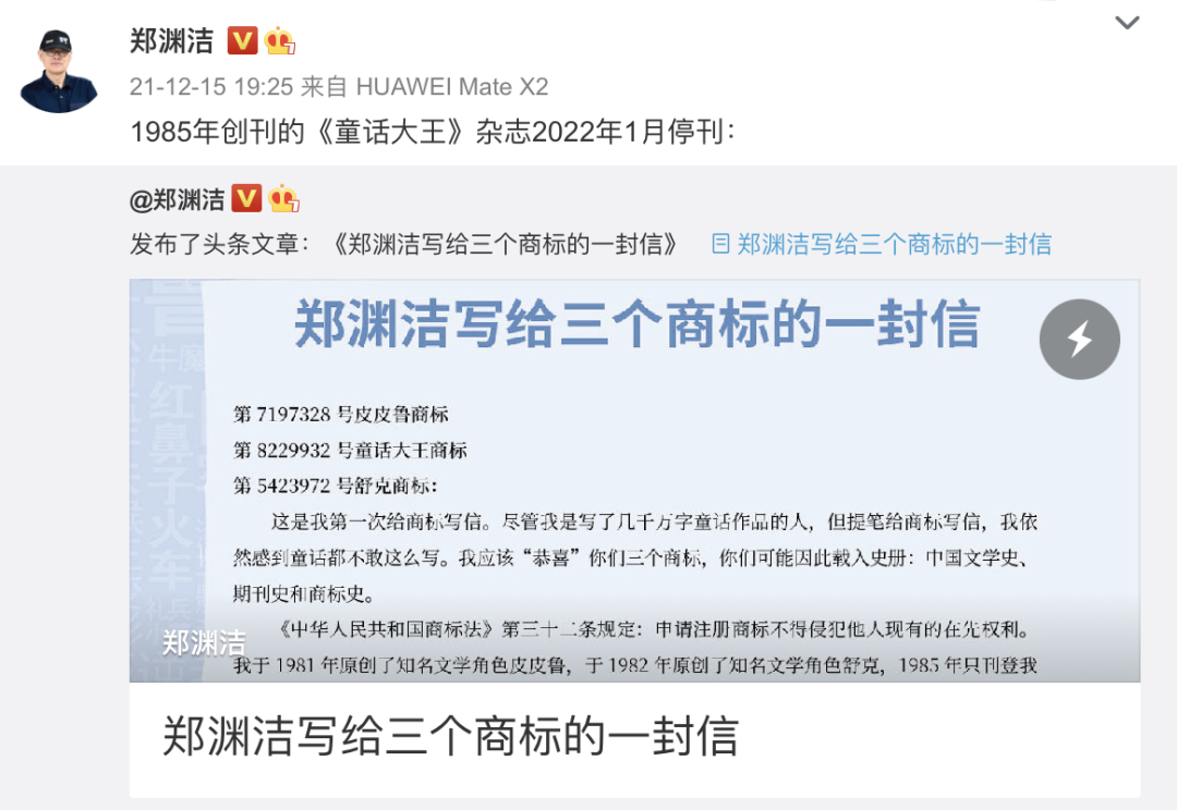 今年1月份,《童话大王》宣布停刊。但年近古稀的郑渊洁,仍然饱含对普通人的关怀,在他的微博上,每天都会有年轻人咨询他关于婚恋、工作、人际关系等等的问题,而他的回答则妙趣横生。
