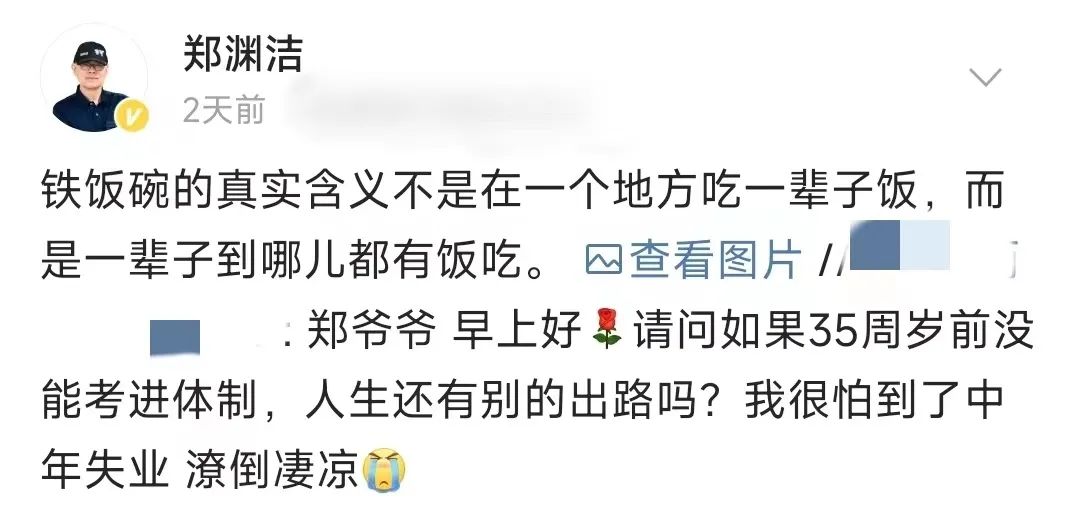 有人问,从旧单位到新单位要怎么跟旧同事告别,郑渊洁答道, “除了口碑,什么都别留下”。 有人评论说自己要考研了,希望得到鼓励。郑渊洁回复,“祝你考研成绩全国第二”。为什么是第二不是第一?“我在抖音祝过一位读者考研全国第一。”最后还诚恳地说了句“抱歉”。