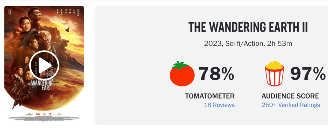 此次《流浪地球2》同步内地登陆北美市场,目前已经逼近500万美元大关,而北美也成为了整个海外最大的市场。尤其影片在口碑层面亦是取得了突破,其中北美烂番茄达到了78%,而爆米花指数更是高达97%,这也意味着影片充分得到了普通观众的认可。某种程度讲,国产电影用好莱坞最擅长的方式征服了好莱坞。