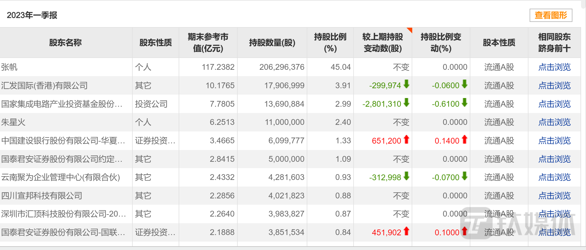 到了2022年底国家大基金持股约1650万股,持股比例为3.6%;到2023年3月底其持股数量降至1369.1万股,占比为2.99%。据了解,目前国家大基金位列十大流动股东的12家上市公司中,一季度国家大基金仅减持了2家企业,分别为汇顶科技和晶方科技。