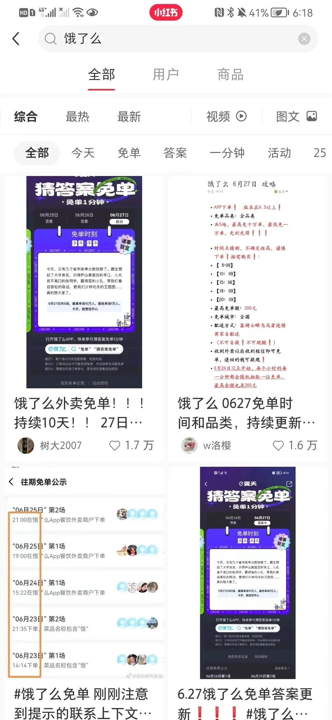目前距离活动开始已经过去一周的时间,然而网上关于饿了么的话题依旧不断,此时此刻网友们仍在热火朝天的讨论着下一场免单的时间到底是什么时候。