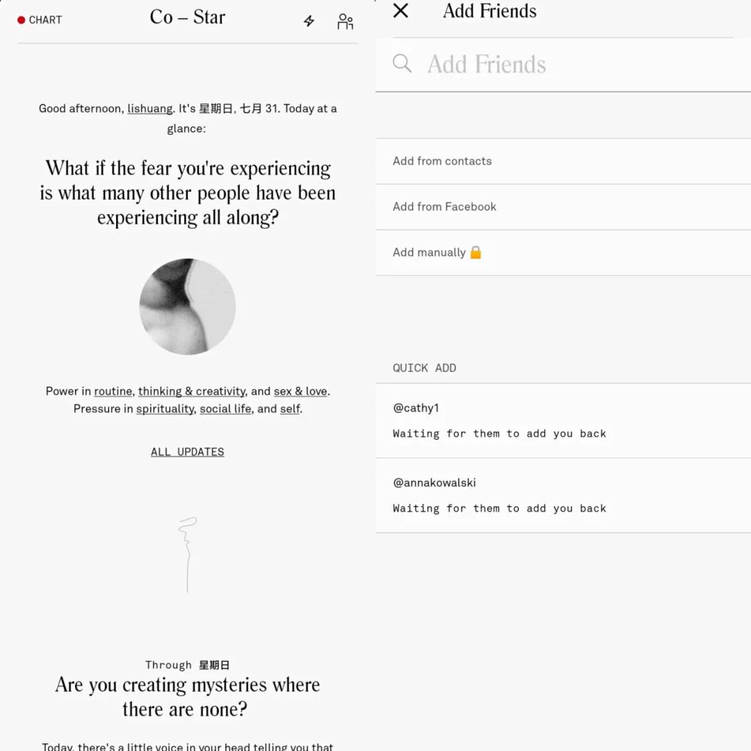Co–Star 主页;“Friends”页