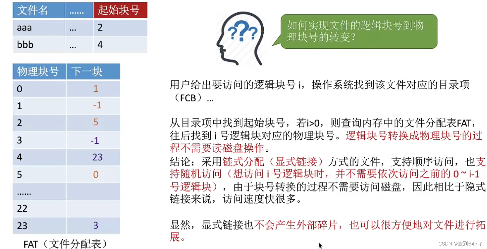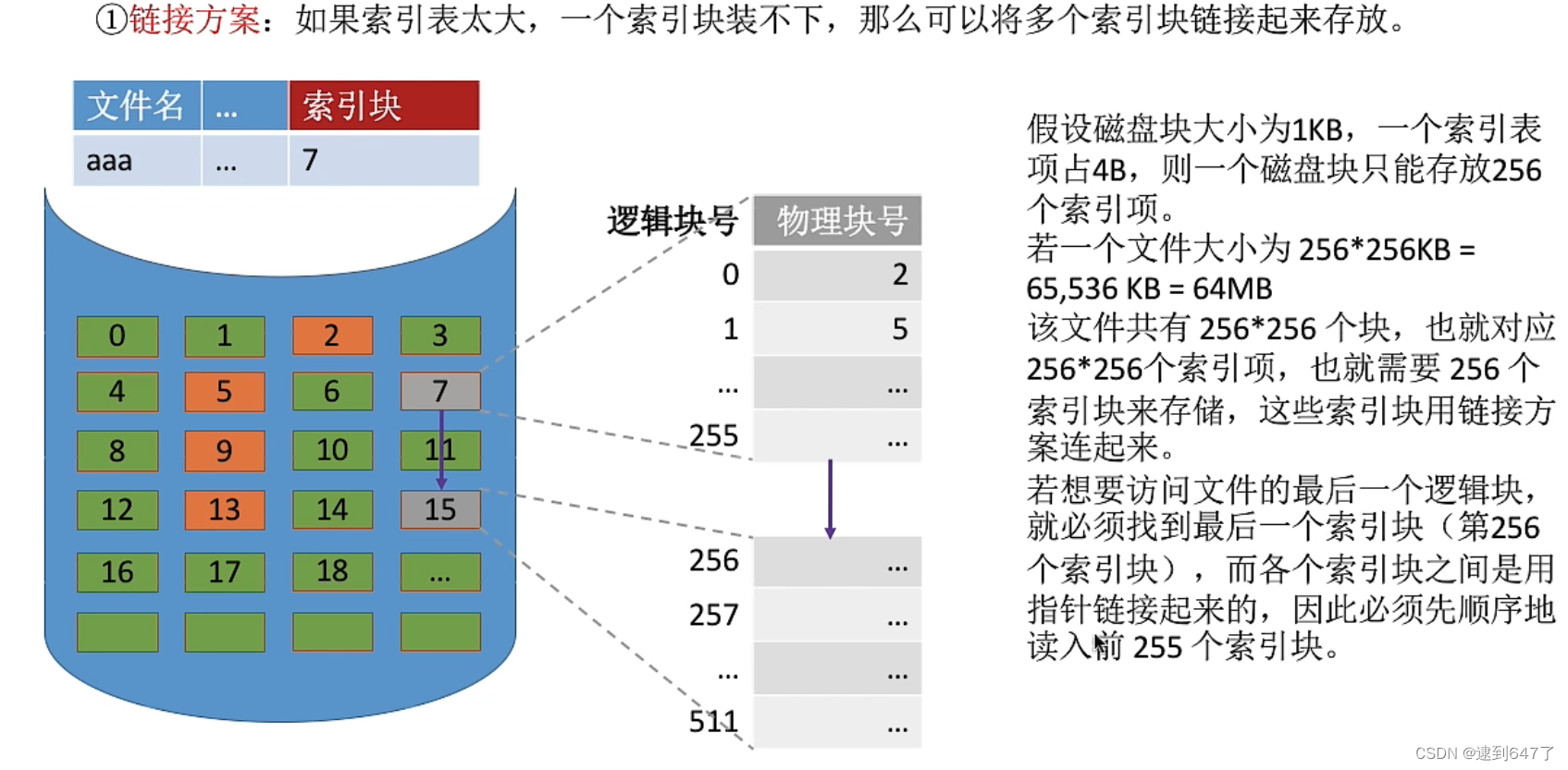 但方便文件拓展,且不会产生磁盘碎片。