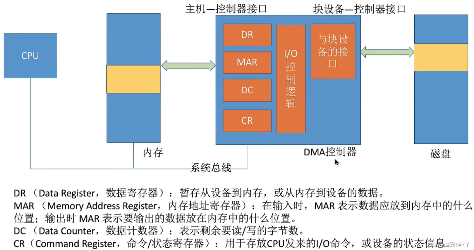 CPU和I/O设备机械部件之间的“中介”