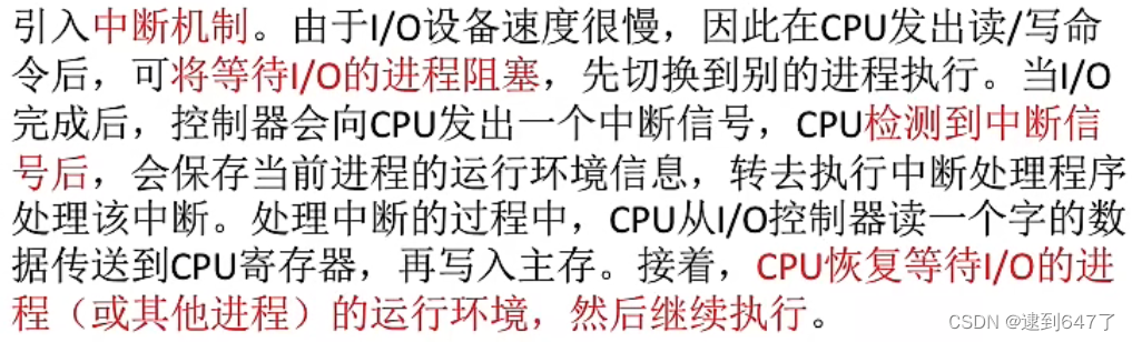 本质:发生中断就需要操作系统介入,开展管理工作。(中断可以使CPU从用户态切换为核心态)