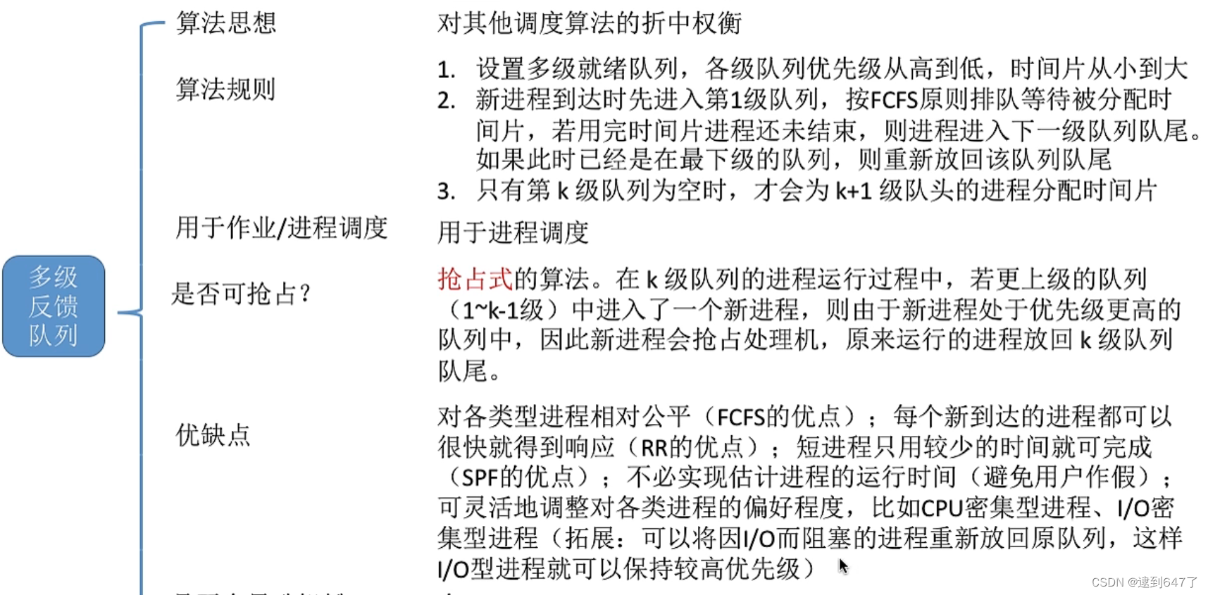 如果时间片太大,算法会退化为FCFS,时间片太小,频繁切换会降低效率