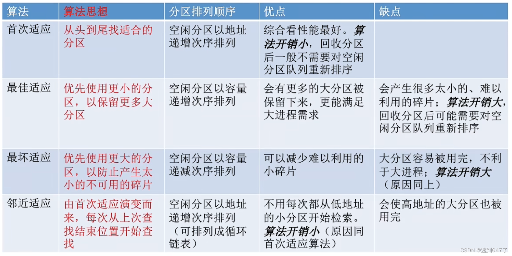 空闲表法(适用于连续分配)