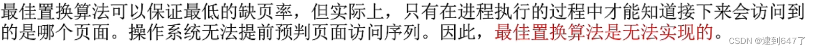 最佳置换算法(OPT)——淘汰以后永不使用的页面,或者再最长时间内不被访问的页面。