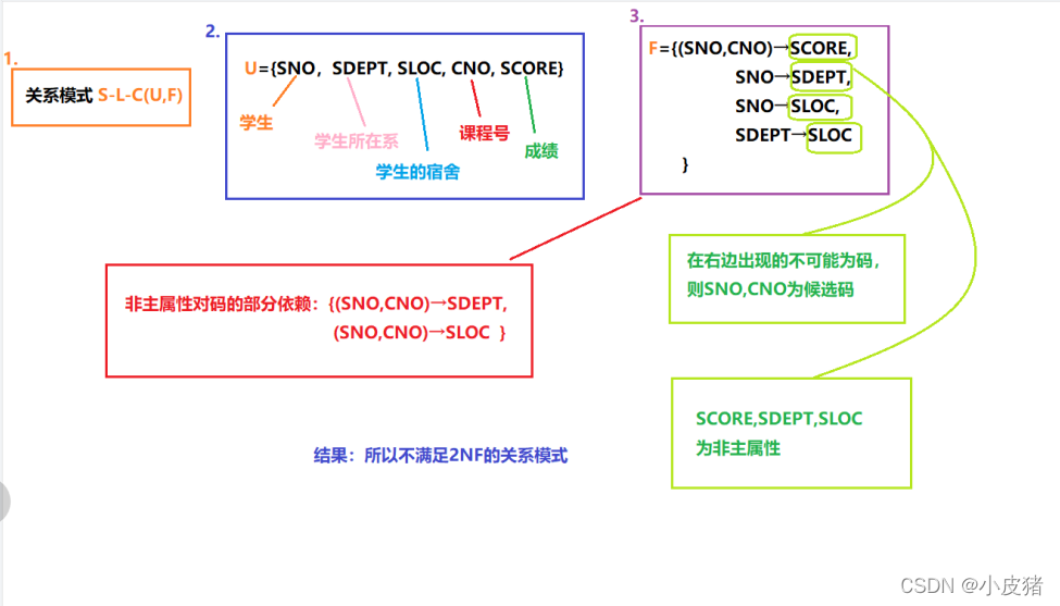 注: **1NF是规范化的最低要求,是关系模式要遵循的最基本的范式,不满足1NF的关系是非规范化的关系 **