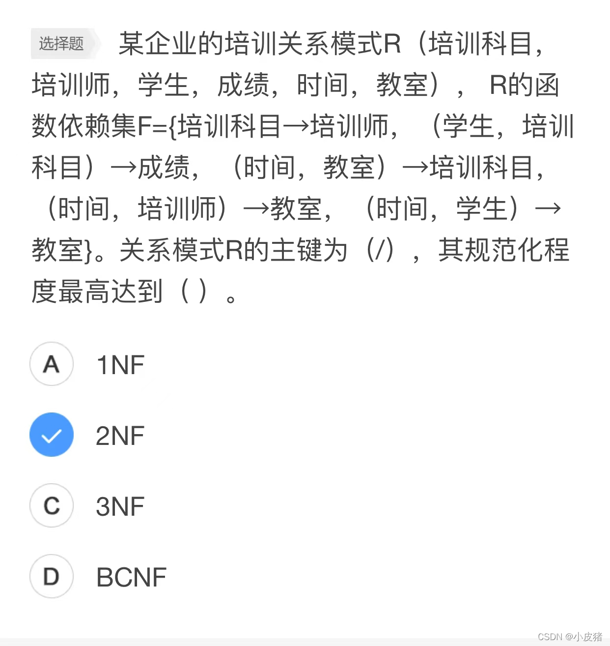 ** 软件中级软件设计师中很少考到第4第5范式,所以我们备考时几乎不考虑。数据库部分在上午的考试也占到5到6分,然后下午还有一道大题比重还是有的。**