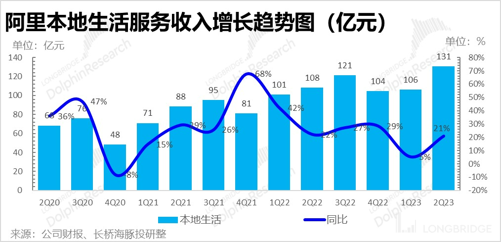 本地生活服务(到家——饿了么;到店:高德、飞猪)收入 131 亿,同比增长 21%。这部分业务订单在走出疫情后,加上高德订单的推动,总订单同比增长了 5%;单均收入的增长则是由于用户补贴的大幅减少,饿了么用户补贴是作为收入减项来计,而且对应饿了么走出疫情极端情况后,单位经济依然为正。