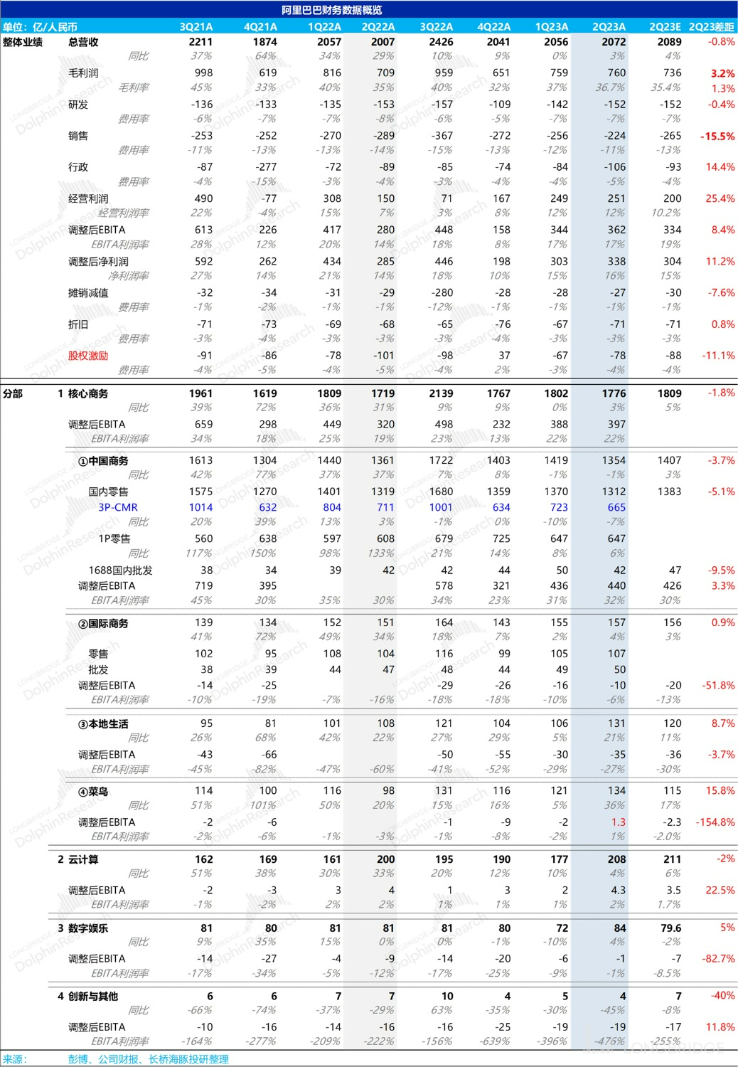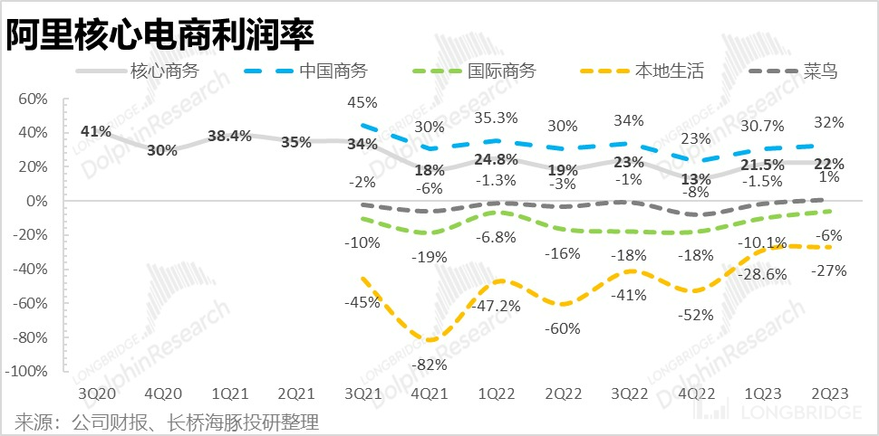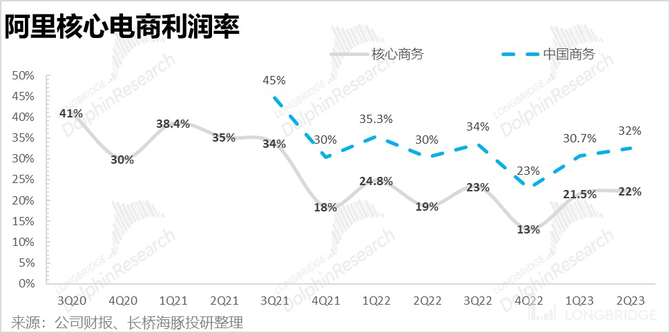 由于国内平台电商盈利较高,它所在的中国商务(还包括了自营电商的新零售业务以及批发电商 1688.com),在各种降本增效,尤其是降低补贴、狠减销售费用之后,利润释放却非常超市场预期。