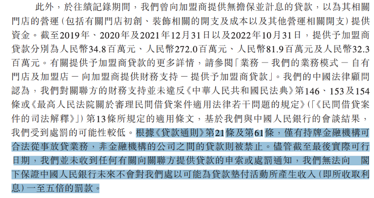 KK招股书中提到,“根据《贷款通则》第21条及第61条,仅有持牌金融机构可合法从事放贷业务,非金融机构的公司之间的贷款则被禁止。”