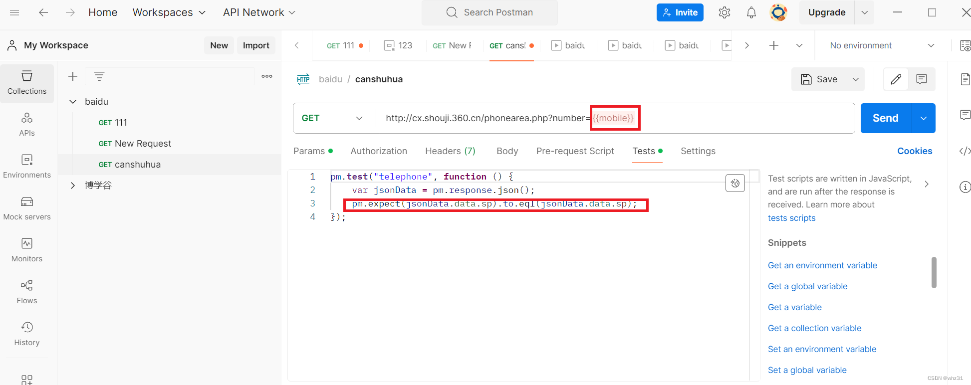2.修改手机号运营商接口的请求信息,参数改成{{mobile}}