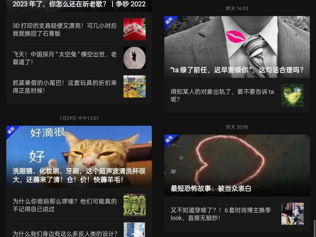一些机构化的公众号创作者,也就是“大号”,往往内容产能相对旺盛,可以同时推送多条内容,少则4、5条,长则7、8条。对于用户来说,长篇推送占据了大半个屏幕,带来了不好的体验。出于优化用户体验的考虑,微信信息流对公众号生态来了一次“众生平等”式的调整,一律只能展示两条推送。
