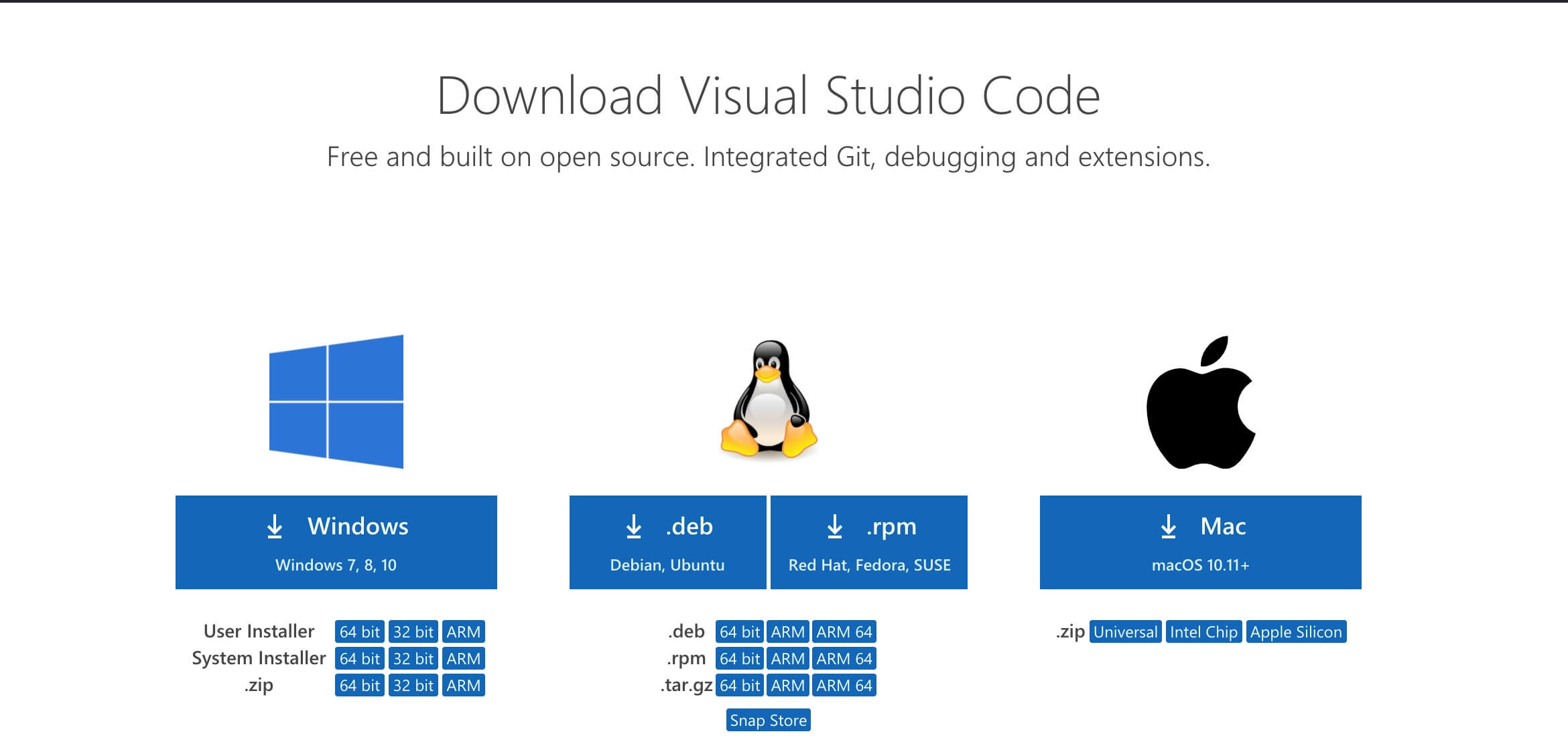 我们可以在 VScode 官网首页下载对应系统(支持Windows、Linux、macOS)的软件: