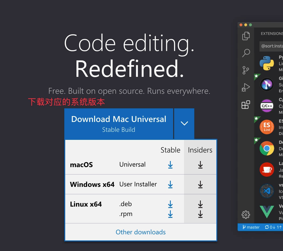 - VScode 官网地址:Visual Studio Code - Code Editing. Redefined