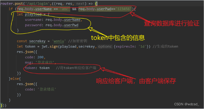 (2)当用户登录后,在服务器端生成token (token中包含哪些信息由用户决定),然后将token响应给客户端